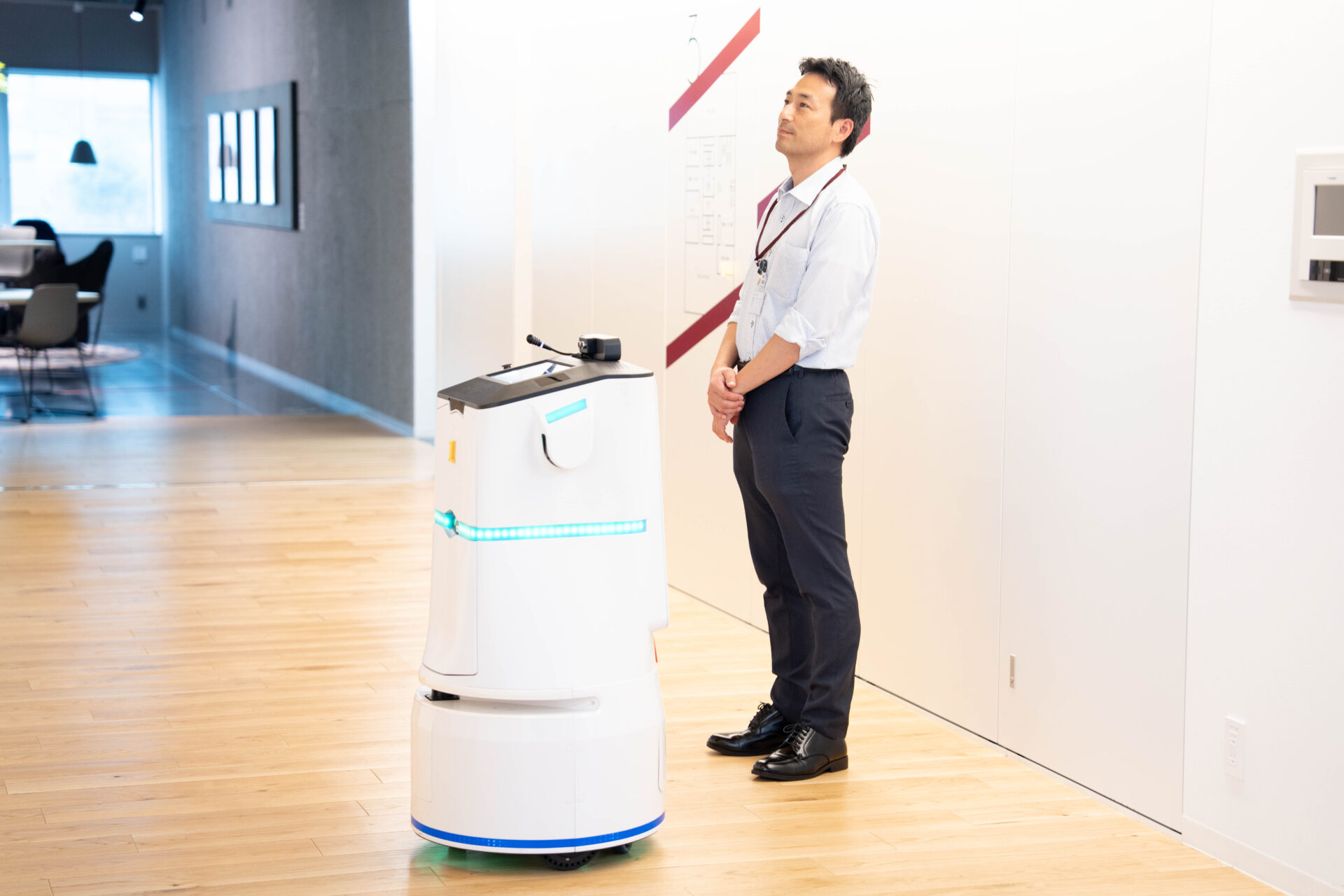 「想定以上にロボット側から人に対して状況を知らせる必要があると感じました。例えばエレベータ前で待っている時など、ロボットが今何をしているのかが周囲の人に分からないと、スムーズな共存は難しい」